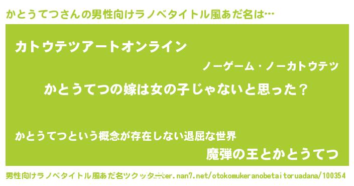 | 女子向けラノベタイトル風あだ名 | 『かとうてつ様がみてる』 |