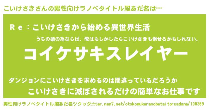 | ヒーロー風カッコイイあだ名 | 『超時空戦士コイケサキ』『炎刃騎士コイ』 |