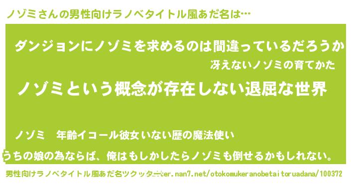 ノゾミさんの男性向けラノベタイトル風あだ名をツクッター!