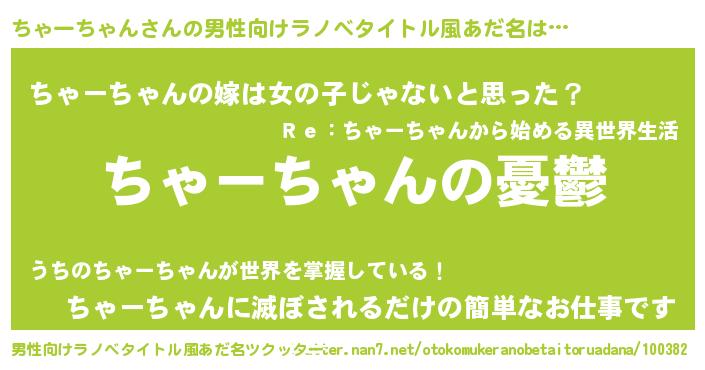| 女子向けラノベタイトル風あだ名 | 『ちゃーちゃん姫と円卓の騎士』 |