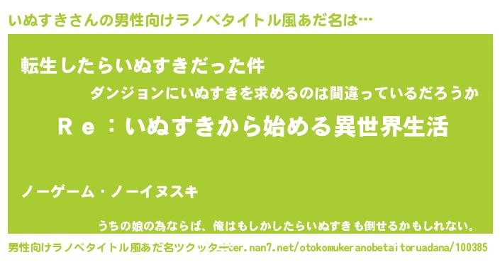 | 女子向けラノベタイトル風あだ名 | 『いぬすきストレイドッグス』 |