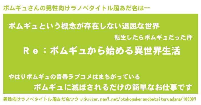 | ヘコむあだ名 | 『ボムギュ(小並感)』『なまこ酢』 |