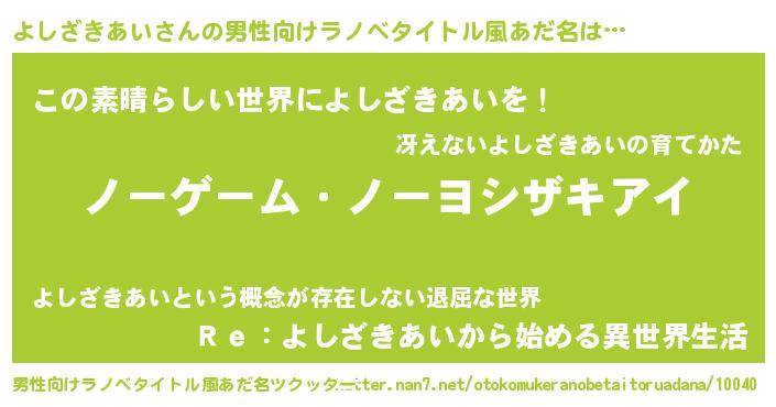 | 女子向けラノベタイトル風あだ名 | 『よしざきあい恋絵巻』 |