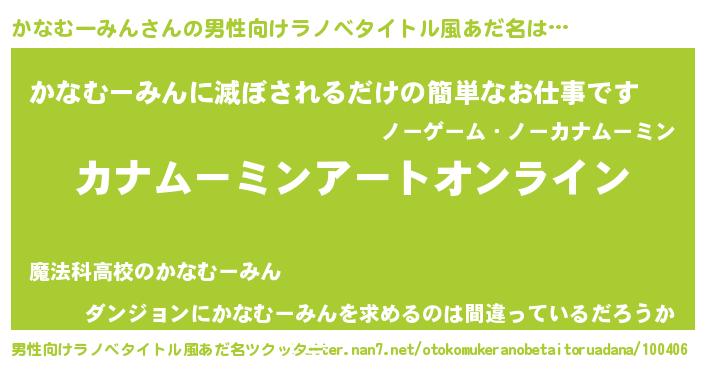 | 女子向けラノベタイトル風あだ名 | 『誰かこのかなむーみんを説明してください! ~契約から始まるウェディング~』 |