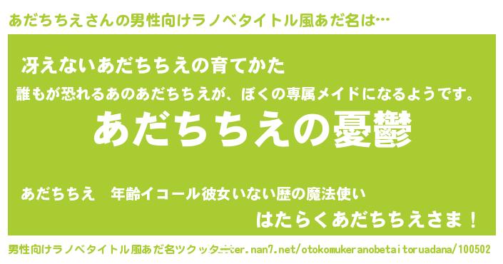 | 女子向けラノベタイトル風あだ名 | 『あだちちえ姫と円卓の騎士』 |