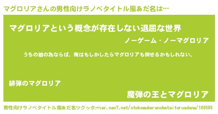 | 胡散臭い通販商品みたいなあだ名 | 『運命の人と巡り会える高級そうな絵画…その名も「マグロリア」』 |