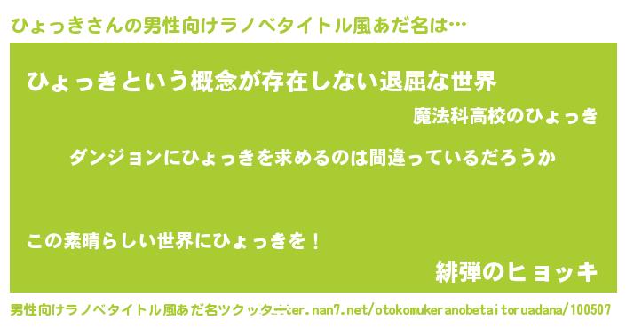 | 胡散臭い通販商品みたいなあだ名 | 『信頼と実績のペンダント…その名も「ひょっき」』 |