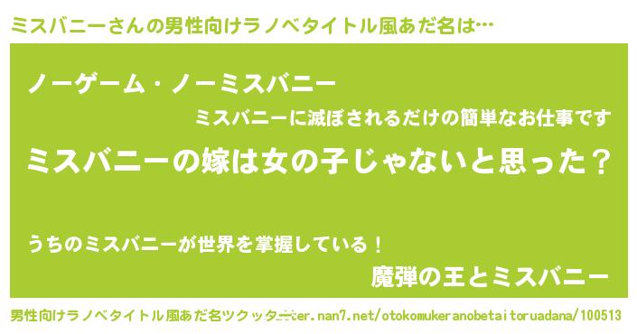 | ヒーロー風カッコイイあだ名 | 『炎刃騎士ミス』『愛の使者ミスバニー』 |