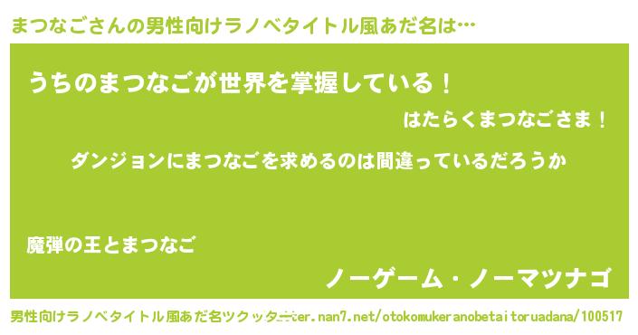 | 女子向けラノベタイトル風あだ名 | 『まつなごは平凡を望む』 |