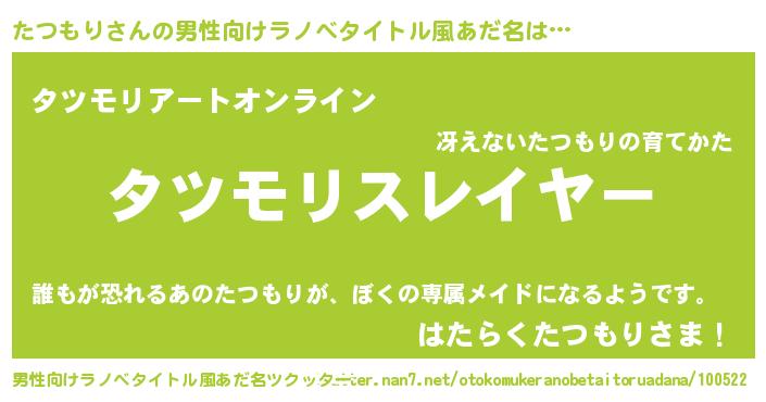 | ヒーロー風カッコイイあだ名 | 『スーパータツモリ』『ネオタツモリ』 |