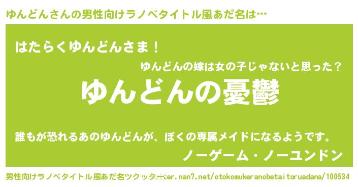 | 女子向けラノベタイトル風あだ名 | 『(仮)ゆんどんのやんごとなき事情』 |