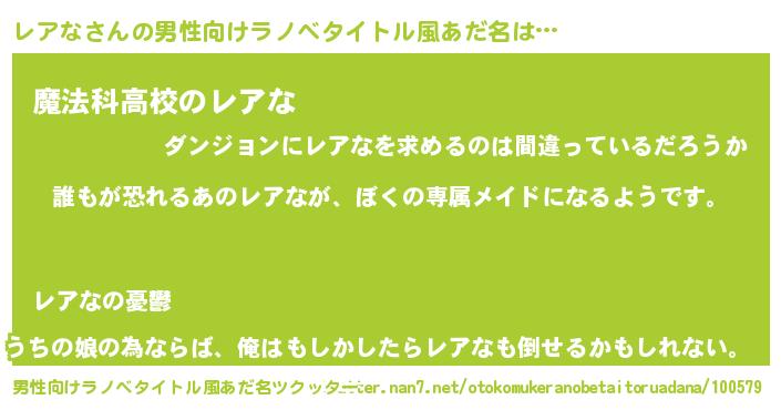 | 女子向けラノベタイトル風あだ名 | 『異世界でカフェレアなを開店しました。』 |