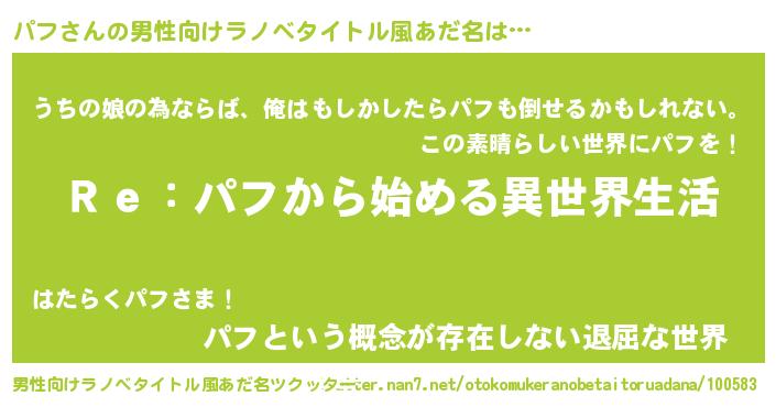 | 女子向けラノベタイトル風あだ名 | 『パフストレイドッグス』 |