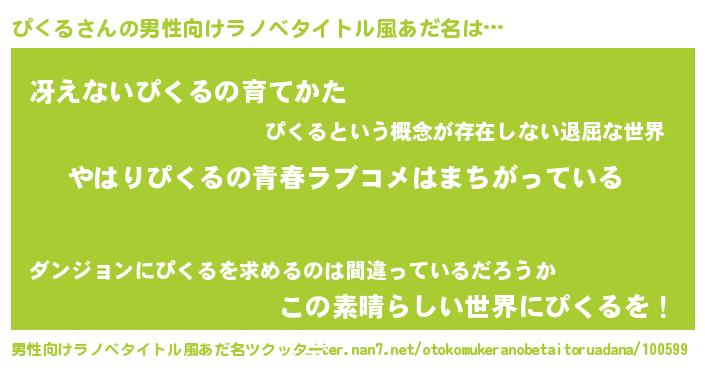 | 女子向けラノベタイトル風あだ名 | 『ぴくるの雑貨屋さん』 |