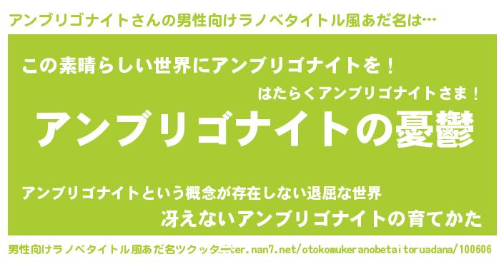 | 女子向けラノベタイトル風あだ名 | 『(仮)アンブリゴナイトのやんごとなき事情』 |