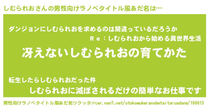 しむられおさんの男性向けラノベタイトル風あだ名をツクッター!