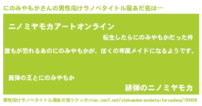 | ヒーロー風カッコイイあだ名 | 『ネオニノミヤモカ』『仮面ニノダー』 |