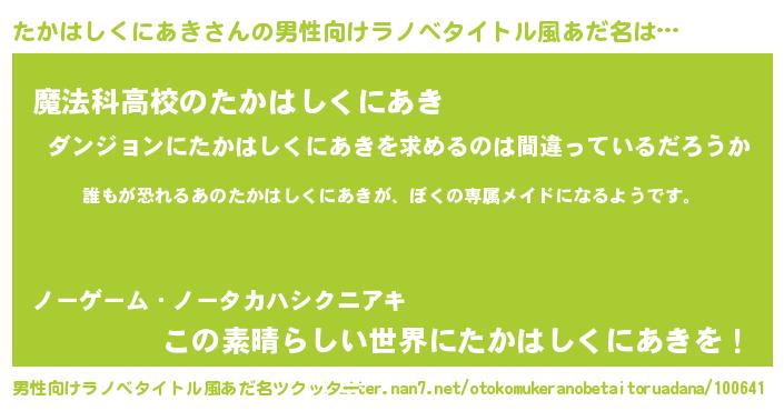 | 意味不明あだ名 | 『永久保存たかはしくにあき』 |