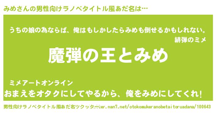 | ヒーロー風カッコイイあだ名 | 『仮面ミメダー』『ウルトラみめマン』 |