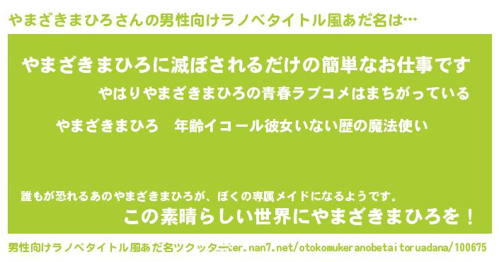 | 胡散臭い通販商品みたいなあだ名 | 『あなたにだけ特別に提供する世界で10本だけ現存している希少なブランデー…その名も「やまざきまひろ」』 |