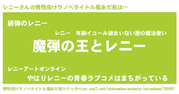 | 意味不明あだ名 | 『住所不定無職レニー(98歳)』 |