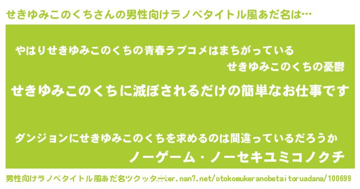 | ヒーロー風カッコイイあだ名 | 『ウルトラせきゆみこのくちマン』 |