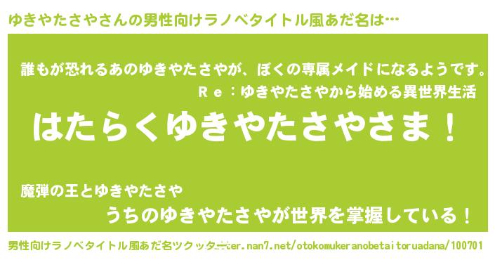 | ヒーロー風カッコイイあだ名 | 『ネオユキヤタサヤ』『仮面ユキダー』 |