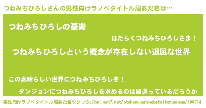 | 胡散臭い通販商品みたいなあだ名 | 『来世でも幸せになれる健康食品…その名も「つねみちひろし」』 |