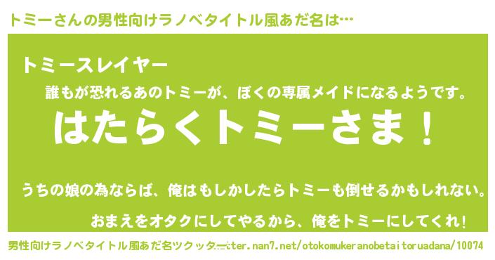 | 女子向けラノベタイトル風あだ名 | 『首の姫と首なしトミー』『トミー恋絵巻』 |