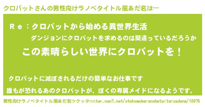 | 胡散臭い通販商品みたいなあだ名 | 『世界中を虜にした100年もののヴィンテージワイン…その名も「クロバット」』 |