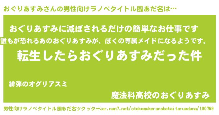 | 伝説のあだ名 | 『古より伝わる勇者おぐりあすみ』 |