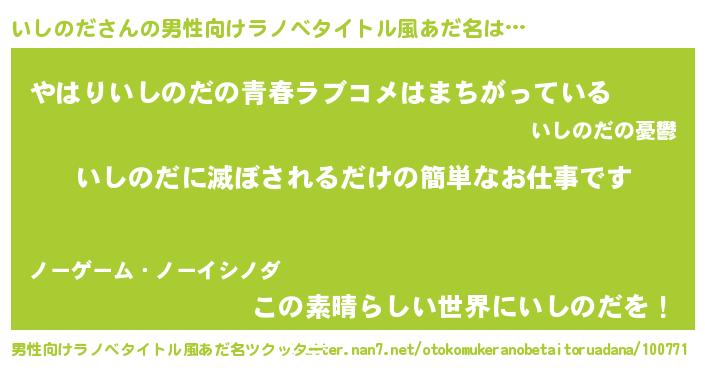 | 胡散臭い通販商品みたいなあだ名 | 『運命の人と巡り会える高級そうな絵画…その名も「いしのだ」』 |