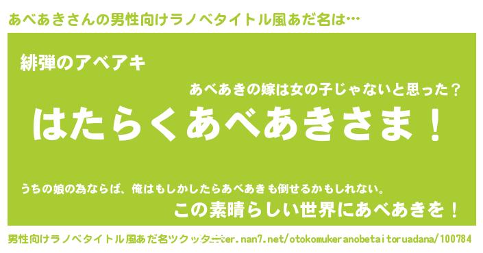 | 欧米人風あだ名 | 『アンジェラ・あべあき』 |
