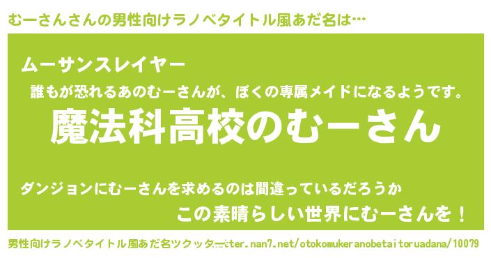 | 女子向けラノベタイトル風あだ名 | 『むーさんなんてお断りですっ。』 |