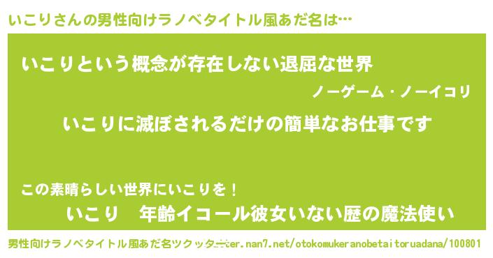 | ヒーロー風カッコイイあだ名 | 『ネオイコリ』『友情の使者いこり』 |