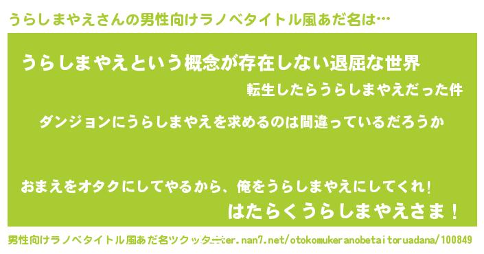 | 女子向けラノベタイトル風あだ名 | 『うらしまやえは平凡を望む』 |