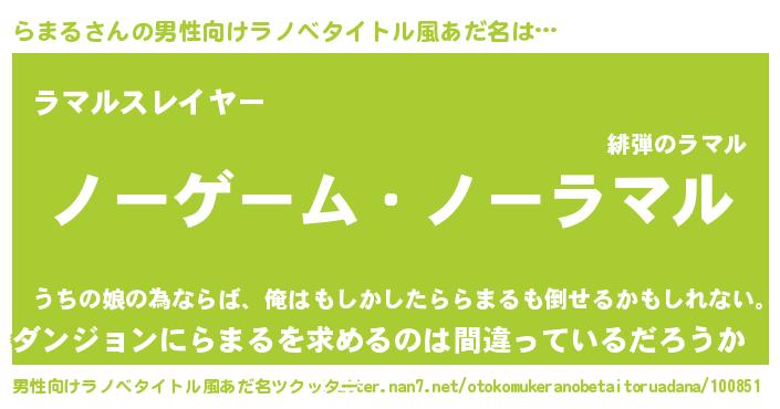 | 女子向けラノベタイトル風あだ名 | 『死神らまるの再婚』『らまるの婚約者』 |