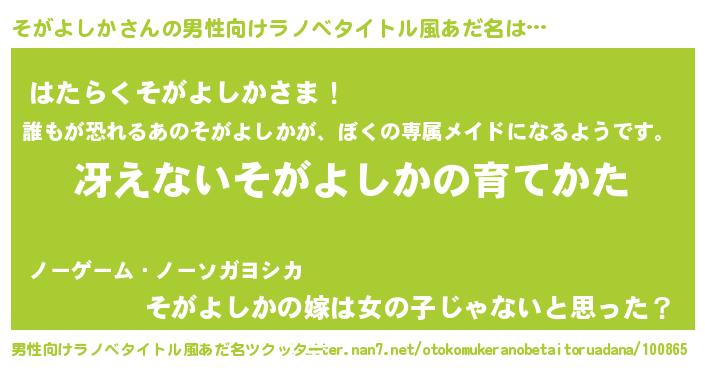 | 意味不明あだ名 | 『とにかく怪しいそがよしか』 |