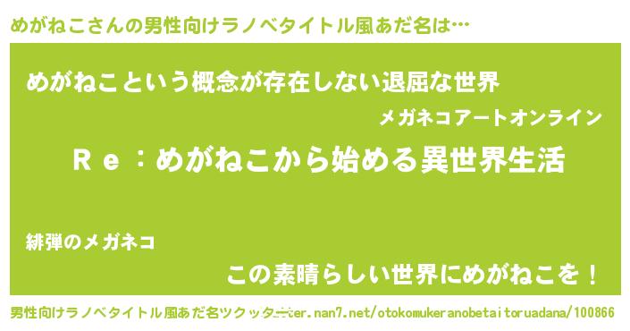 | ヘコむあだ名 | 『めがねこ(震え声)』『めがにゅー』 |