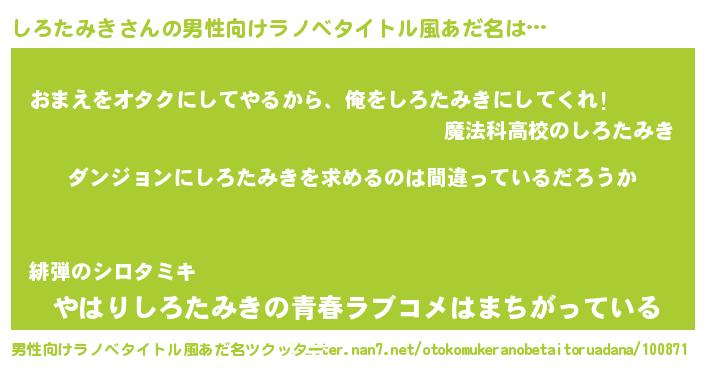 | 胡散臭い通販商品みたいなあだ名 | 『信頼と実績のペンダント…その名も「しろたみき」』 |