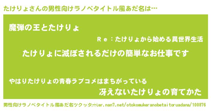 | 意味不明あだ名 | 『住所不定無職たけりょ(91歳)』 |