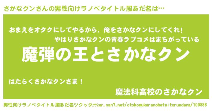 | 意味不明あだ名 | 『住所不定無職さかなクン(86歳)』 |