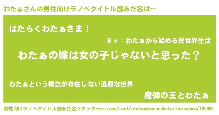 | ヒーロー風カッコイイあだ名 | 『天弓騎士ワタ』『仮面ワタダー』 |