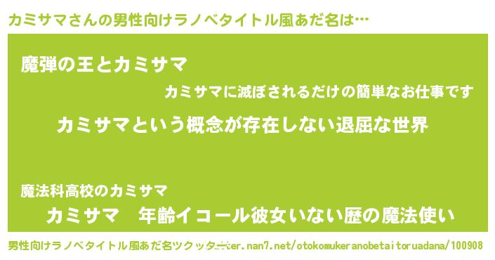 | 胡散臭い通販商品みたいなあだ名 | 『来世でも幸せになれる招き猫…その名も「カミサマ」』 |