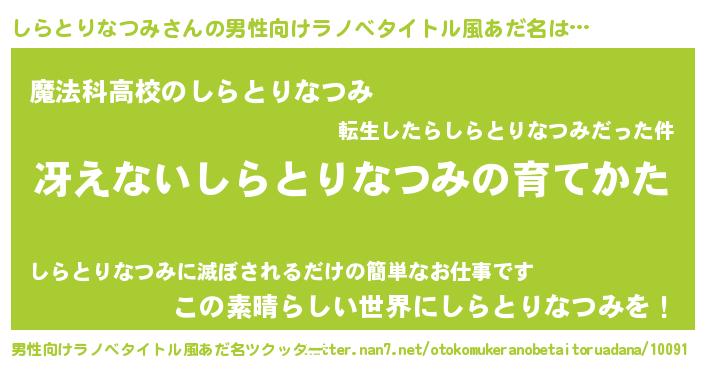 | 意味不明あだ名 | 『自称しらとりなつみ』 |