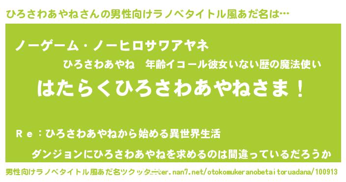 | 肩書あだ名 | 『ひろさわあやねプロデューサー』 |