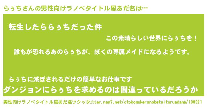 | ヘコむあだ名 | 『らぅち(遠い目)』『らぅお』 |
