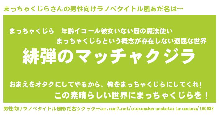 | ヒーロー風カッコイイあだ名 | 『仮面マッダー』『ネオマッチャクジラ』 |
