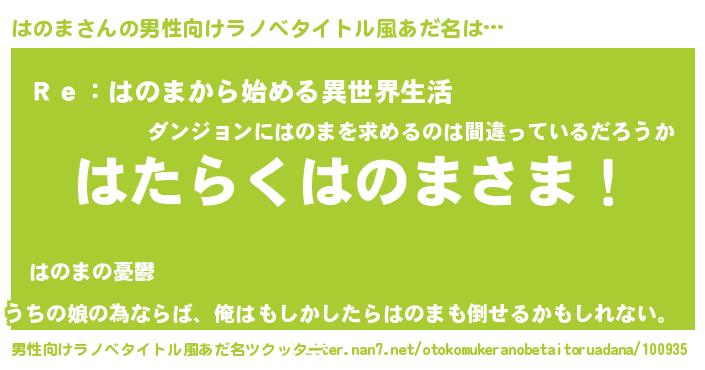 はのまさんの男性向けラノベタイトル風あだ名をツクッター!