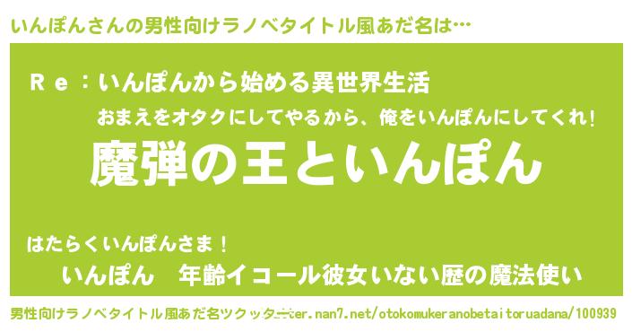 | 意味不明あだ名 | 『住所不定無職いんぽん(41歳)』 |